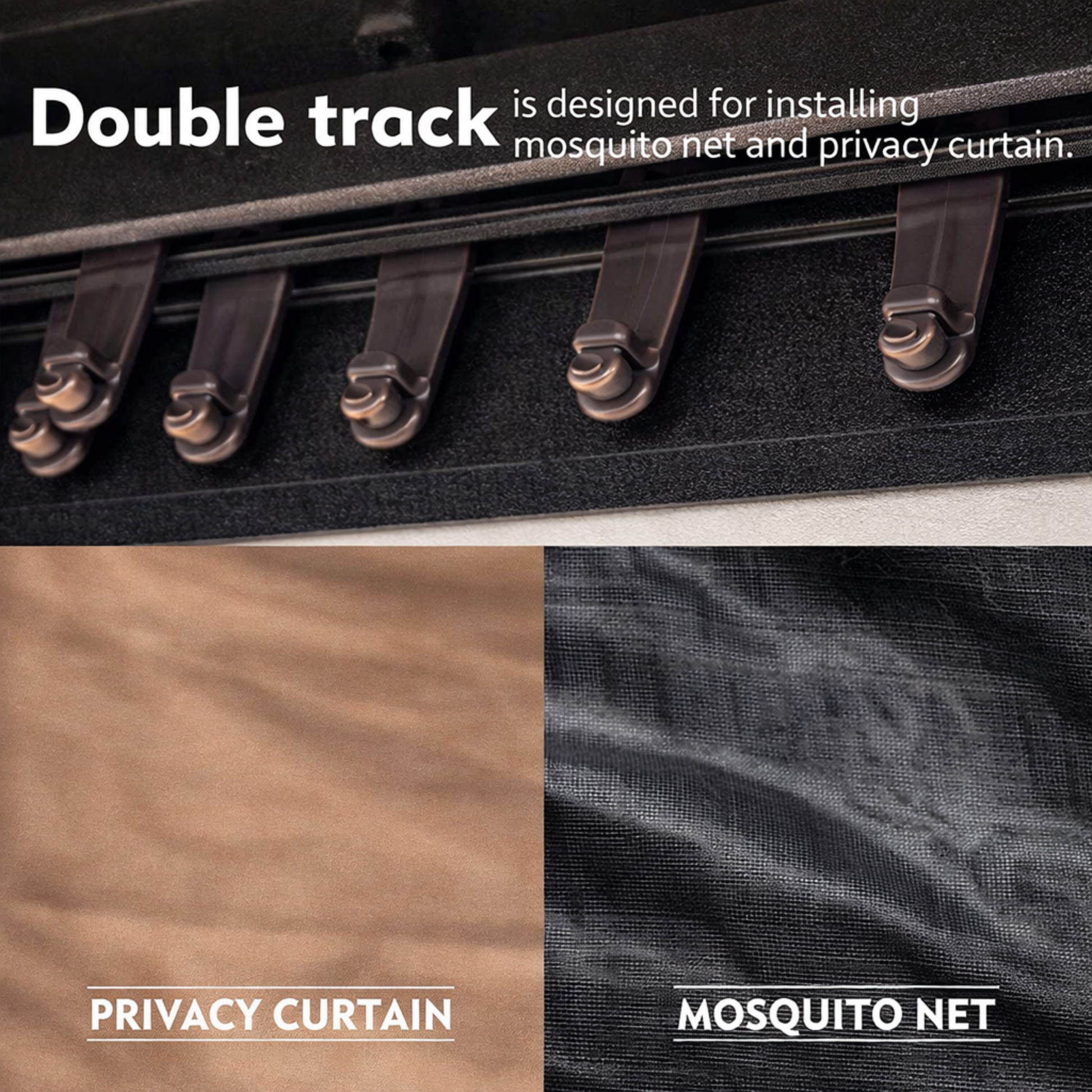 Protective Accessories: Includes netting to keep out insects and shaded curtains for protection from harsh sunlight.