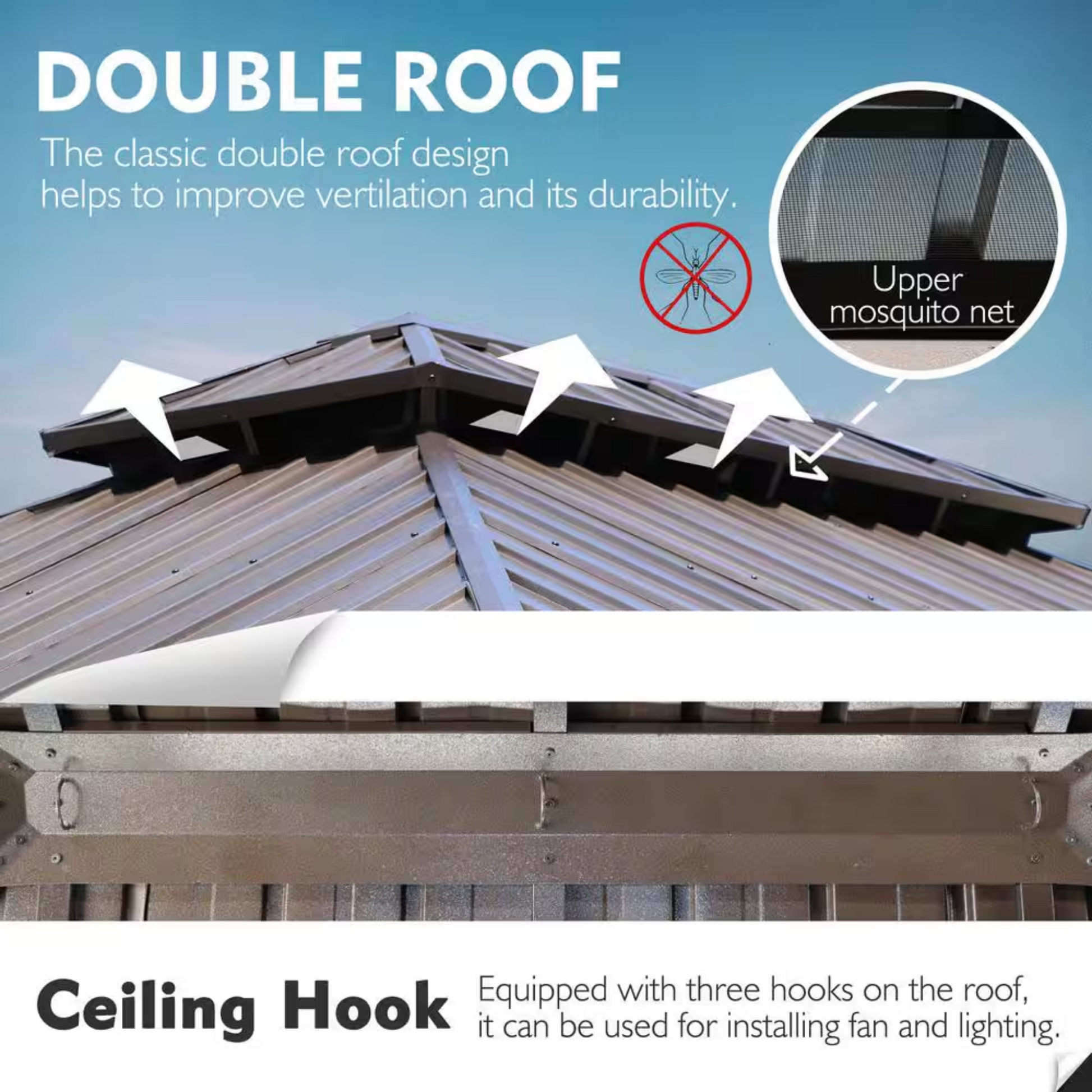 12"×16" Aluminum Hardtop Gazebo – Double Roof Design