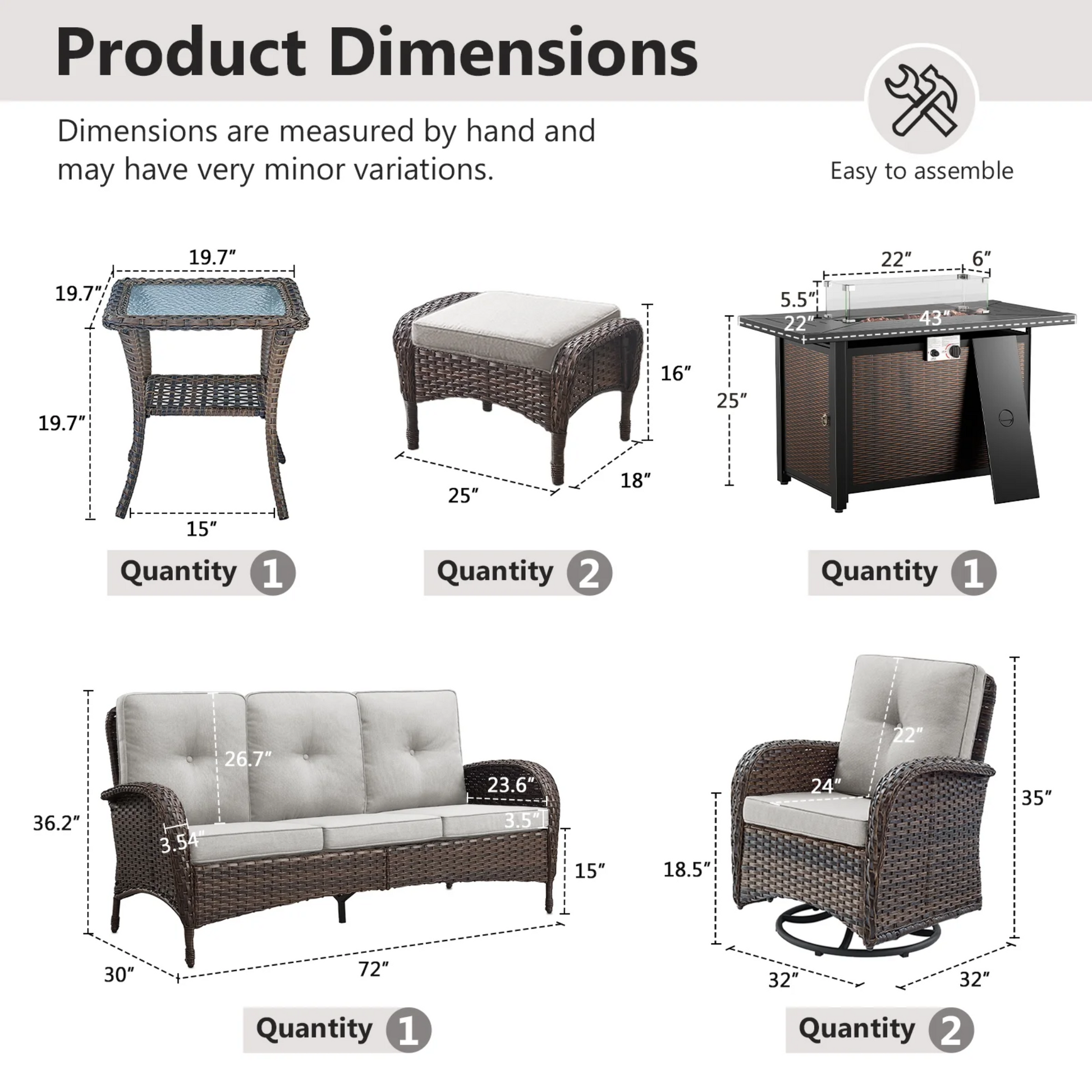 Warranty Scope: Broken rattan, faded, deformation (caused by collision in transit), or defective parts.